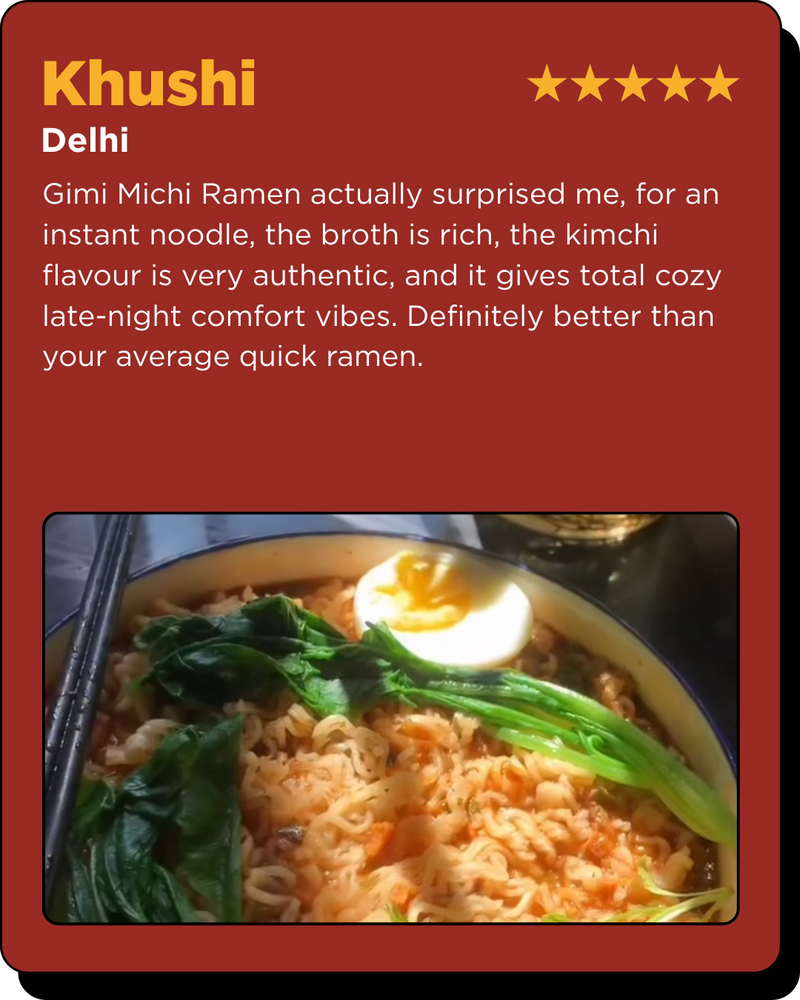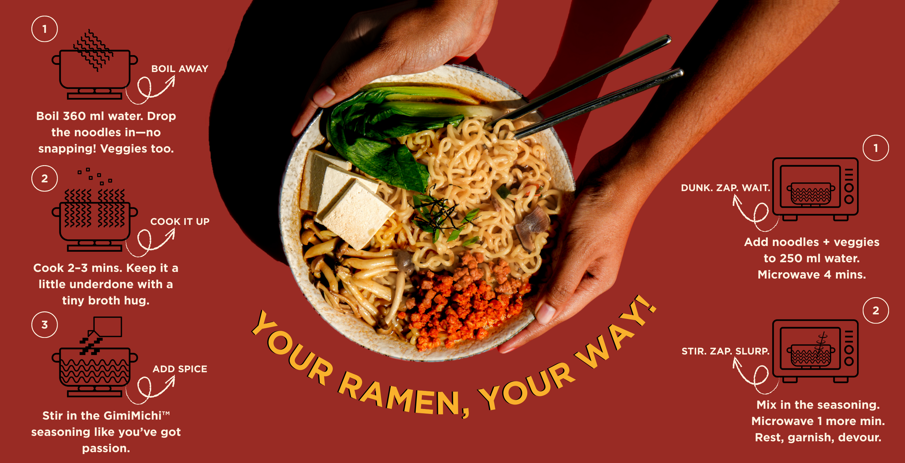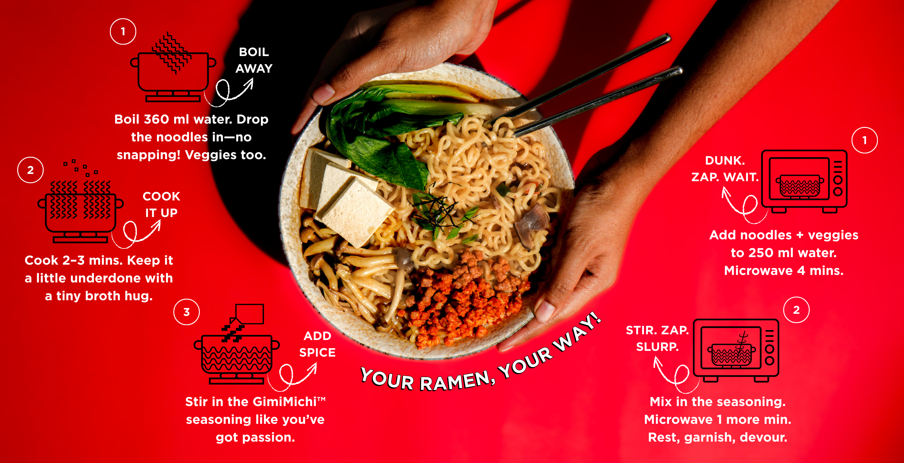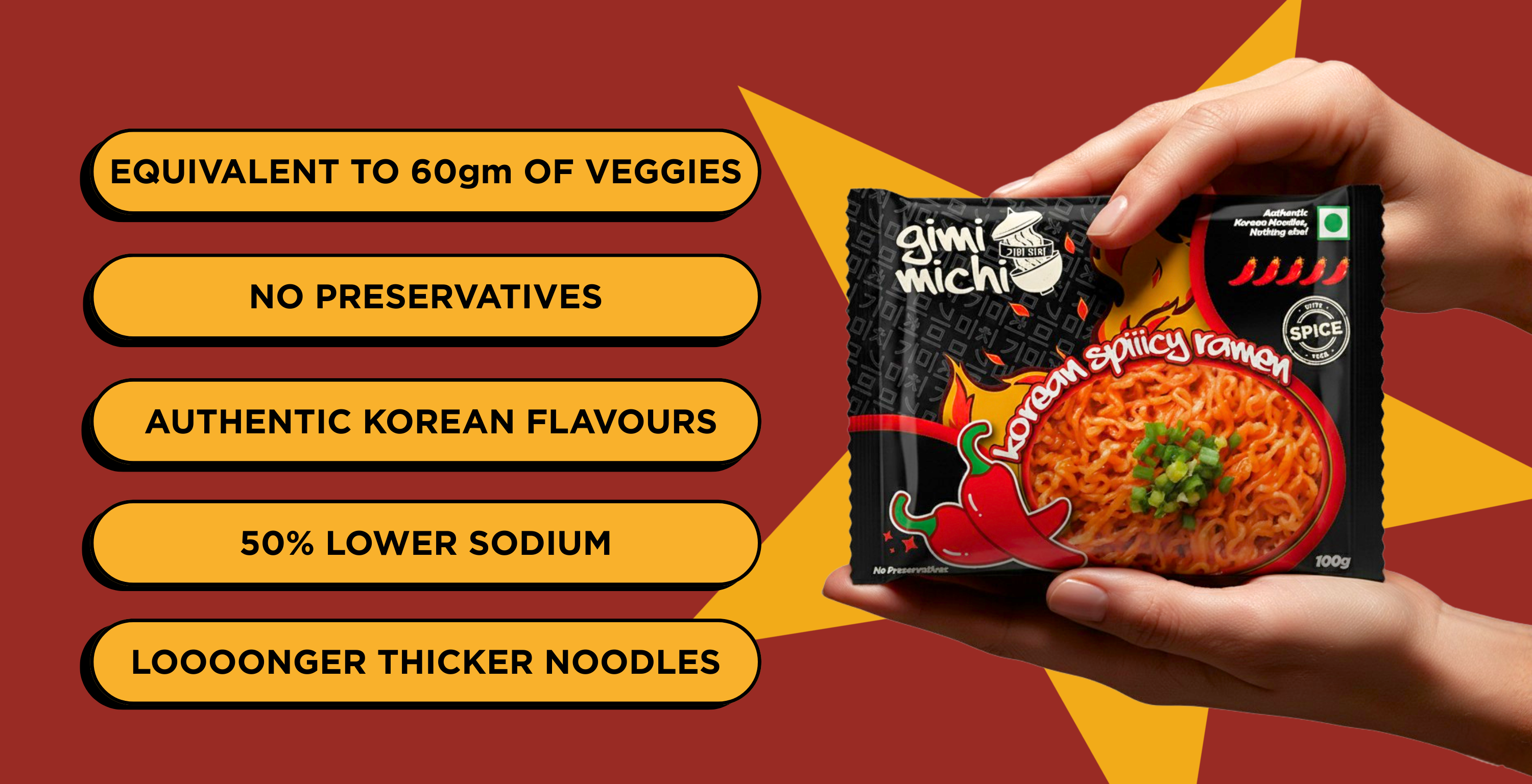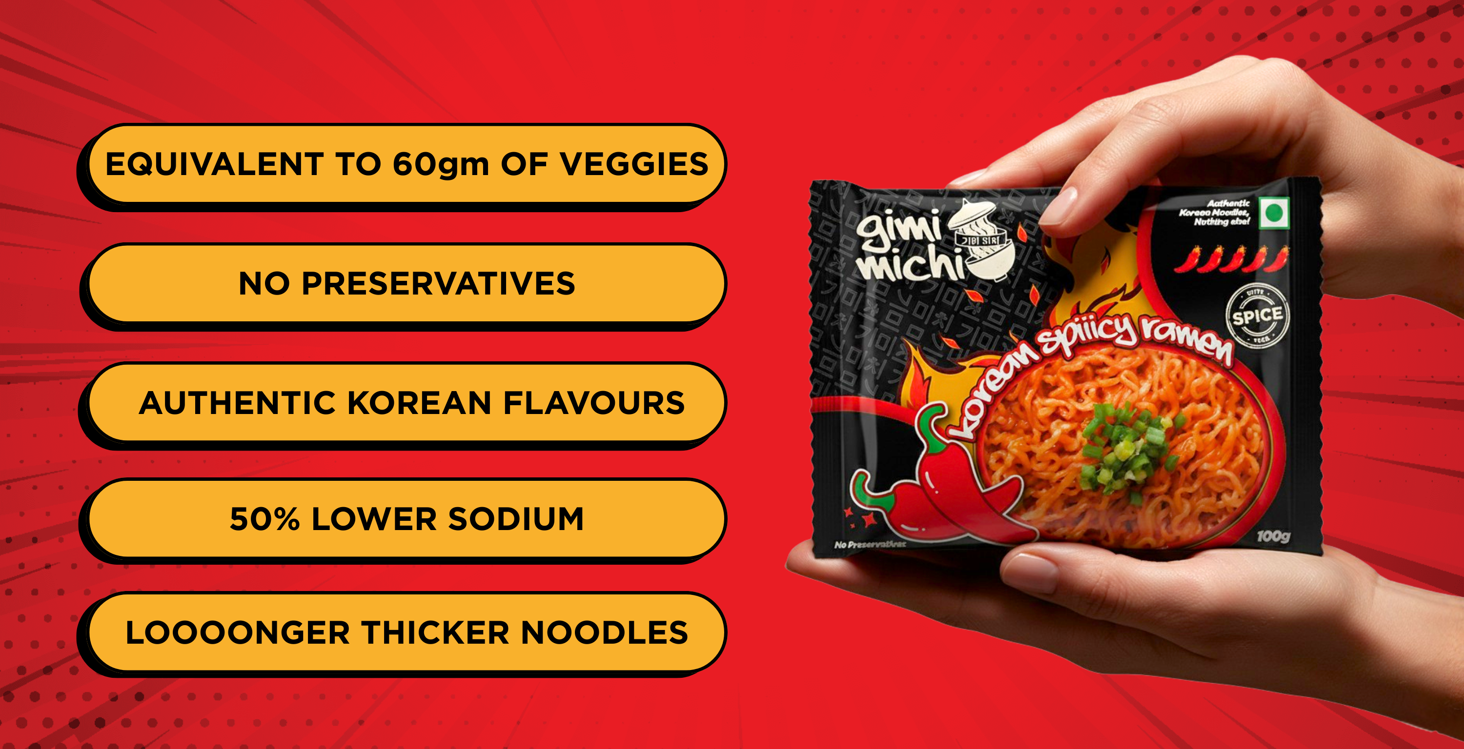 Gimi Michi is on a mission to bring Korean flavors right to you in 10 minutes. Just pop out a pack of Gimi Michi Korean Ramen and within 5 minutes, you will find yourself transported to the streets of Seoul, having authentic Korean cuisine with your friends!